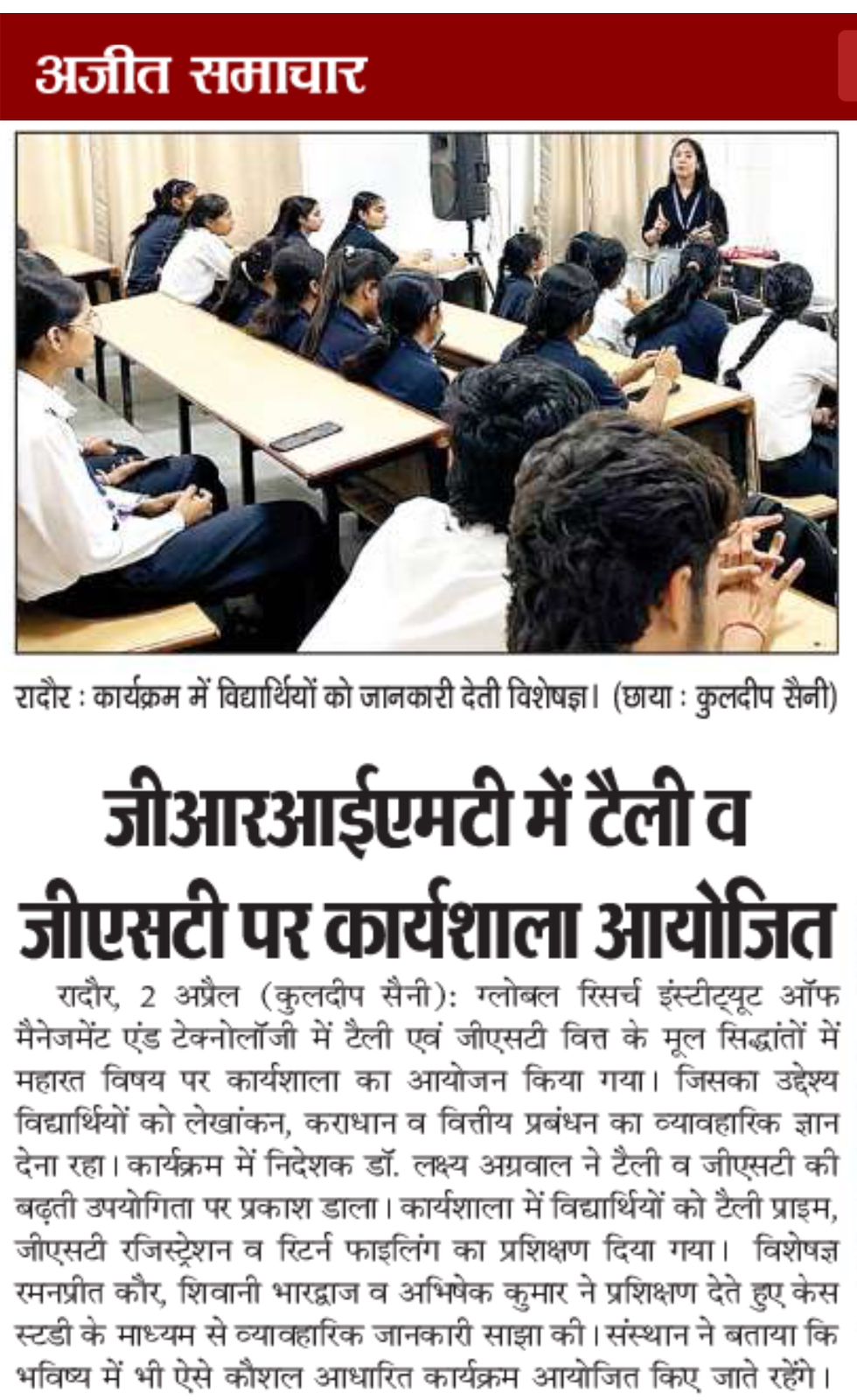Global Research Institute of Management and Technology offers multi-disciplinary courses with experienced and dedicated faculty. GRIMT aims to provide overall development of the students.