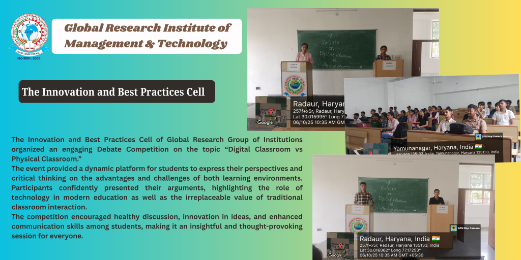 The Innovation and Best Practices Cell of Global Research Group of Institutions successfully organized an engaging Debate Competition on the